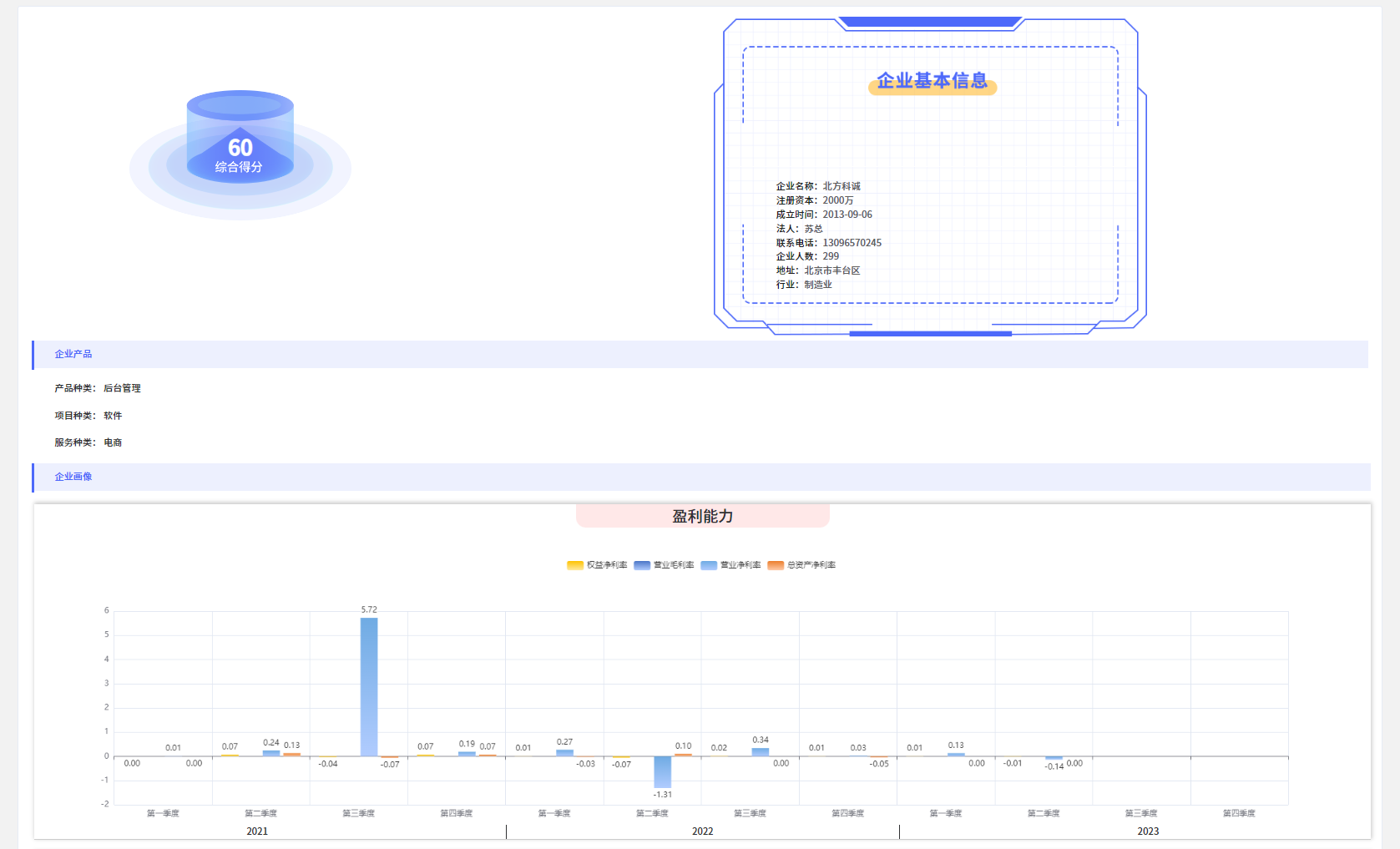 根据数据建模抽取的用户数据,分析企业盈利能力各项指标